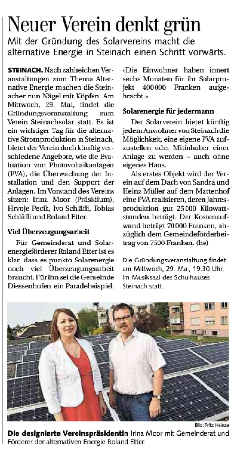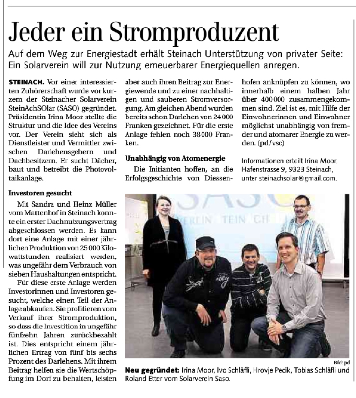 | 31. Mai 2013 - Jeder ein Stromproduzent (SG Tagblatt - Rorschach) |